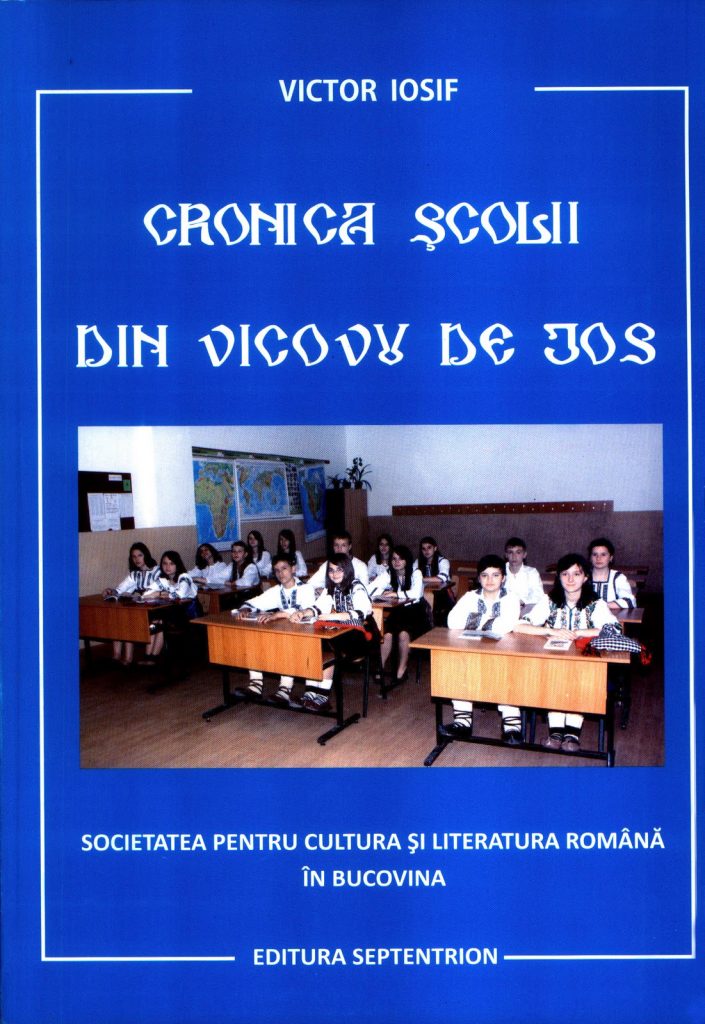Chiar din „Argumentul” tipărit pe prima pagină a lucrării autorul precizează următoarele „ Cronica Şcolii din Vicovu de Jos” are în vedere învăţătura de carte într-o formă organizată, atestată din 1804 până în zilele noastre, cu menţiunea că, începând cu l noiembrie 1904, se poate vorbi şi de Şcoala de la Remizău, care nu face obiectul cercetării noastre”. Şi, bună a fost precizarea autorului pentru că această carte, într-adevăr este rodul unei cercetări de zeci de ani. În anul 1911, mai precis la data de 5 noiembrie, şcoala din centrul comunei a fost sfinţită şi i s-a atribuit numele de „Fracisc Iosif I”, împăratul imperiului austro- ungar. Nu există un document oficial , dar acest lucru este stipulat într-o invitaţie a consiliului comunal la această ceremonie, fiind semnată de Ignatie Motrescu, primar, Constatin Popovici, preşedintele consiliului şcolar şi Ioan Bolocan, cond. şcol. Urmează un capitol foarte interesant, de fapt aşa cum sunt toate: „Vicovu de Jos între trecut şi viitor”. Aici autorul face o succintă prezentare a satului, începând cu 23 mai 1436, data primei atestări documentare a localităţii şi până în ziua de azi. „Oamenii îşi încropeau gospodăriile cel mai adesea sub dâmburi şi în locuri ferite de furia apelor, iar ogrăzile erau mici, ca să rămână loc de arături. Din aceleaşi motive, cireşii, prunii şi chiar merii se sădeau pe dealuri, iar pometele pe loc drept erau puţine şi acestea, s-arau de cele mai multe ori”. Fără să ne spună în mod expres, autorul scoate în evidenţă marea grijă a sătenilor săi pentru chivernisirea pământului ce-l aveau în proprietate, mai ales că era şi foarte puţin. Doar în câteva fraze prezintă succint modul în care-şi construiau jicovenii casele de locuit, precum şi arhitectura acestora. Toate cele prezentate sunt de mare interes pentru toţi cititorii. Capitolul 5 continuă cu prezentarea viziunii primarului Constantin I. Motrescu despre acest sat. Sunt cunoscute preocupările primarului pentru cultură, fiind un temeinic sprijin pentru aceasta. El prezintă viziunea sa despre dezvoltarea satului în anii următori, pe termen mediu şi lung, făcând cele mai multe referiri la dezvoltarea învăţământului preşcolar de toate gradele din comună. Capitolul „Şcoala de la Vicovu de Jos între 1804 şi 1918” este foarte bine documentat. El face referire încă de la raportul înaintat Consistoriului din Cernăuţi din 13 iunie 1778 prin care s-a recunoscut că „ până acum mai fiecare sat îşi avea dascălul său, care făcea carte cu copiii”. În „ Catastivul de hirotonii al Episcopiei Rădăuţilor pe anii 1757- 1782” sunt trecuţi 56 de diaconi şi preoţi din satele stăpânite de către mănăstirea Putna , printre care sunt menţionaţi şi cei din Vicovul de Jos şi cel de Sus. Făcând trimitere la o bibliografie foarte bogată ( 44 de documente sau opere) autorul prezintă dezvoltarea învăţământului vicovean până la primul război mondial. Astfel cititorul are fericitul prilej de-a cunoaşte conţinutul unor documente ale vremii, dându-şi astfel seama de complexitatea fenomenului şcolar în această parte de ţară. Deloc neglijabilă este contribuţia comunităţii la viaţa şcolii, dovadă că „jicovenii” şi-au dat seama de importanţa rolului şcolii în viaţa comunităţii, chiar cu două- trei sute de ani în urmă.” Autorul face referire la documente oficiale, emise şi de statul austro- ungar din 1813 până în 1910, prezentând din acestea date din care cititorul îşi poate face o imagine a modului în care a evoluat învăţământul în limba română şi-n acest colţ binecuvântat de ţară. În continuare, autorul ne prezintă modul în care „jicovenii” au trăit în bună înţelegere cu alte naţionalităţi : evreii şi germanii, precum şi doi poloni. Interesant este faptul că germani nu s-au stabilit în Vicov din anul 1785, ci doar din anul 1861. Din relatările unor săteni, reproduse în carte, destul de consistente aflăm despre viaţa, preocupările şi comportamentul civilizat al acestor minoritari. ”Imperativele şcolii sub semnul păcii şi al războiului (1914- 1945)” este capitolul în care autorul prezintă cum au intrat ruşii în sat, plecarea lor, apoi intrarea germanilor în zonă şi respingerea lor. Şi şcoala a avut destul de suferit în acest război, în general, şi în această perioadă, în special.. Dezvoltarea învăţământului din sat este prezentată foarte documentat, cu bune şi cu rele. Din diferite documente emise de Inspectoratul Regiunii XIV Cernăuţi aflăm despre necesarul de cadre didactice şi de materiale pentru şcolile din această zonă şi , în mod special de şcolile din Vicov. Păstrându-şi bunul obicei, autorul apelează şi la acest capitol la amintirile unor săteni în vârstă, participanţi la aceste evenimente. Dintre aceste mărturii, destul de multe, ne-am oprit la câteva , şi anume: „Cel mai însemnat învăţător din comuna noastră a fost Ioan Vicoveanu. Apoi vin la rând Ilie Spânu, Vasile Cârstean, George Tudose, Constantin Bolocan, Teofil Spânu, Vasile, toţi din Vicovu de Jos. Străini au fost mai puţini : Ifrim Isopescu, unul Arimiţoaiei, Moldoveanu, Oanea.”(Nicolae Spânu a lui Vasile). „În clasa I ne-a învăţat directorul, un domn bătrân, Popovici…Clasele V-VII se făceau la un loc. Atunci a ajuns Ilie Spânu director, iar noi am învăţat mai multe cu doamna lui, o femeie tare cumsecade.”( Ana Ursachi a lui Constantin a Mitruţoaiei). În capitolul „ Şcoala în comunism şi tendinţele actuale” autorul face o trecere în revistă a dezvoltării şcolii vicovene, cu precizarea numărului de preşcolari şi elevi din şcolile comunei. Cititorul află lucruri interesante şi despre Gimnaziul unic, care-a funcţionat în comună între 1 septembrie 194