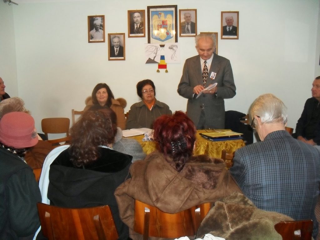 Am prezentat cteva repere ale vieții și activității literare ale Poetului. Am insistat asupra destinului pe care l-au avut cei 11 copii ai căminarului Eminovici. Am citit din aforismele lui, din care menționez :”Moravurile fără legi pot totul, legea fără moravuri nimic ”, ”Justiția subordonată politicului a devenit ficțiune” ; „Secretul vieții lungi a unui stat este păstrarea ierahiei meritului”. Cât de mare adevăr este în toate aforismele lui și cât de actuale sunt! Domnul profesor Vichentie Nicolaiciuc, riguros cum îl știm de mult timp și este renumit, a vorbit despre activitatea de jurnalist a lui Eminescu. A precizat și-a insistat și asupra motivului din care Poetul a avut un sfârșit tragic, nemeritat și prea de timpuriu. Domnul învățător Gheorghe Dascălu a rememorat clipele de neuitat petrecute la Liceul ”Mihai Eminescu” din Botoșani, citind apoi, artistic, poezia ”Codrule, Măria ta”. Doamna Veronica Moscaliuc a evocat prietenia sinceră și curată dintre Mihai și Veronica Micle, citind și poezia ”Lampa”, scrisă de Veronica pentru Mihai. A propus ca în 15 iunie anul acesta să ne deplasăm la Dumbrăveni pentru a participa și noi la o manifestare mai mare închinată lui Eminescu.Doamna Oltea Lungoci a recitat poezia ”Primește-aceste slove”, creație proprie, închinată lui Eminescu. Apoi a uimit asistența recitând din ”Luceafărul”, ”Călin ( file din poveste)”, Scrisoarea III” și ”Ce-ți doresc eu ție, dulce Românie”. Ne-a impresionat prin multitudinea versurilor reținute, dar și prin modul în care le-a recitat. Domnul Ioan Iosif a vorbit despre poezia patriotică a lui Eminescu, exemplificând cele afirmate cu câteva strofe din diferite poezii. Ca întotdeauna, ne-a distrat și cu câteva epigrame adresate unor persoane și personalități românești.