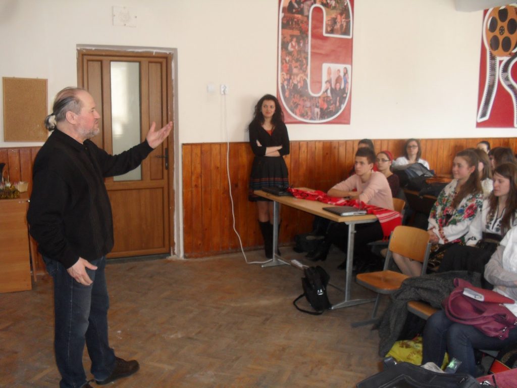 Am enumerat câteva personalități cunoscute de elevi care sunt inserate în acest volum. Mai târziu voi constata că enumerarea a fost eficientă pentru vă elevii, în intervențiile lor, s-au referit la aceste personalități. Fără niciun fel de complexe, după cum îl cunoaștem, maestrul a început discuția cu participanții. Pentru început, a vorbit despre scriitorul rădăuțean Matei Vișniec, fost elev al acestui colegiu,iar doamna profesoară Lia Moldovan a prezentat, cu ajutorul videoproiectorului, un interviu luat lui Matei Vișniec pentru emisiunea ”Din vorbă-n vorbă”, pe care Dumitru Brădățan a ține la un post de televiziune. Acest interviu s-a constituit în suportul pe baza căruia s-a discutat în continuare, elevii dovedind că știu foarte multe despre urbea natală. S-au accentuat câteva idei prezentate de matei Vișniec în acest interviu: ”Când privesc din Franța spre România, privesc prin cultura ei… Trăim într-un moment de ridiculizare a democrației, pentru că statele europene și-au pierdut independența economică… Din fericire, România produce în continuare cultură… La Sibiu se organizează un festival de teatru de ,marcă din Europa, unde vin trupe de teatru din zeci de țări… Sunt sigur că România va ieși din criză prin cultură”. Elevii au început să pună întrebări” de la ce vine titlul cărții, ce semnifică acesta, cum și-a selectat autorul intervievații, a fost refuzat de vreunul pa care a apelat, cum se comportă personalitățile în particular, a întâlnit și personalități ” scorțoase”, de ce crede că s-a retras Zoe Dumitrescu- Bușulenga la mănăstire, mai este actual citatul lui cronicarului despre importanța lecturii, ce lună a anului în place ? ș.a. Încet- încet, după cum îl cunoașteți, maestrul a răspuns la toate întrebările puse, ba a răspuns și la unele nepuse. Am remarcat respectul deosebit al asistenței pentru oaspeți, pe durata activității n-a fost necesară intervenția vreunei profesoare pentru a face liniște. În plus, fermecătoare au fost intervențiile și completările care au venit instantaneu din rândul elevilor. Autorul a afirmat că-i place foarte mult luna martire pentru vă ” în această lună se sărbătorește ziua femeii, femeia fiind al cincilea anotimp în care natura se odihnește u toate florile primăverii, roadele verii, fructele toamnei și zăpezile iernii.” În finalul activității maestrul a acordat autografe doritorilor, pe volumul prezentat, promițând că, dacă vor fi solicitări, le va aduce și volumul anterior. Mi-a plăcut foarte mult și faptul c-a stat de vorbă câte puțin cu fiecare elev care-a solicitat autograf.