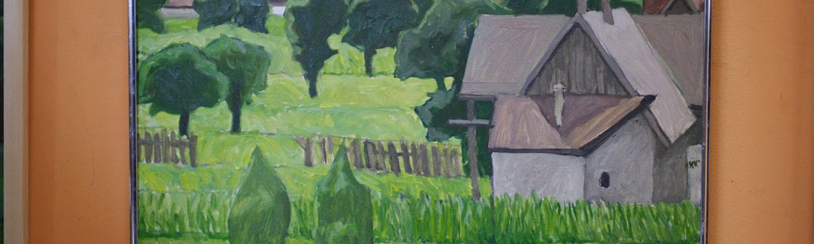 Ne-am împrăștiat apoi prin sală ca să admirăm tabșlourile. Nu știu de vce, dar la un moment dat am avut impresia că sunt pe ulițele satului Straja, deoarece în toate tablourile erau reprezentate aspecte din această localitate. Adîstând în fața unor tablouri , am mai primit explicații din partea maestrului Traian Postolache.