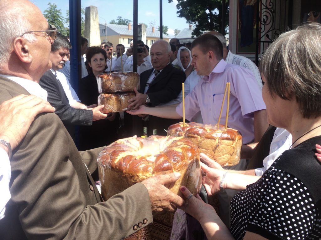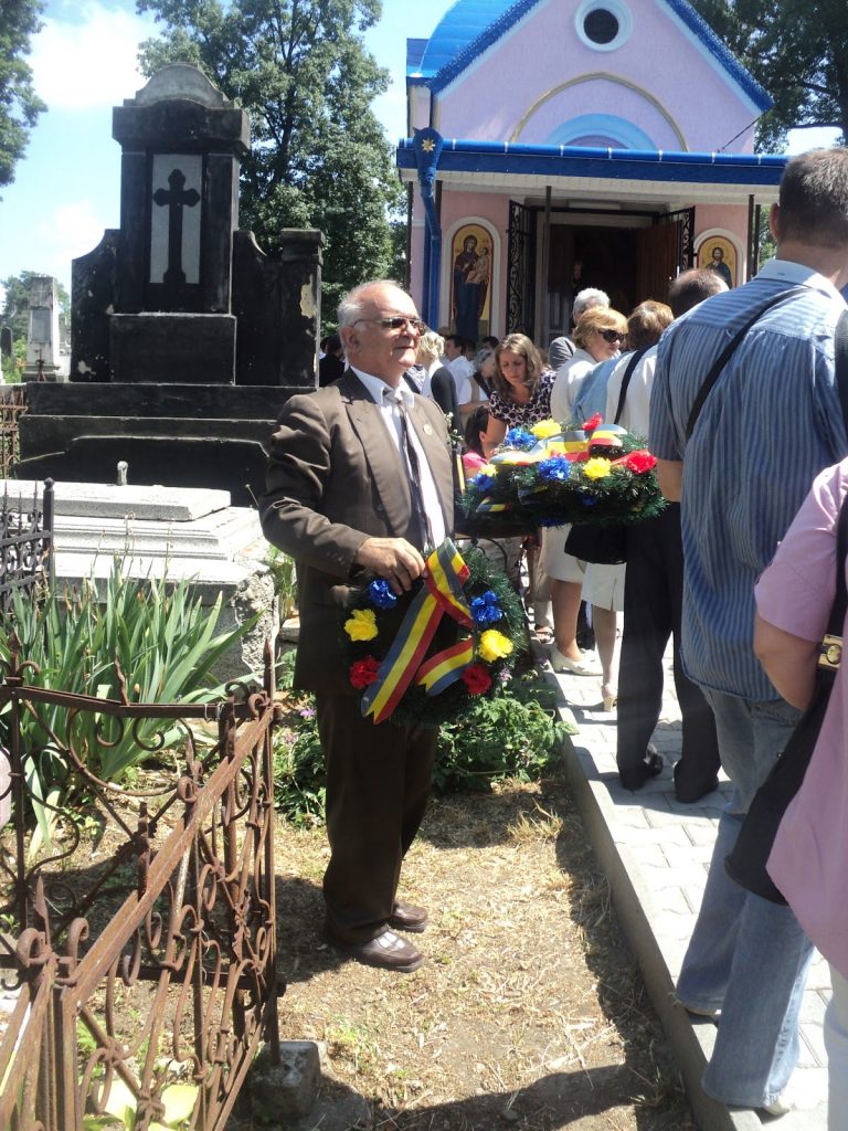 Primul popas l-am făcut la cimitirul central din Cernăuţi. Acolo eram aşteptaţi de mulţi cernăuţeni, mobilizaţi de societatea cernăuţeană, cetăţeni de toate vârstele, de la copii mici până la octogenari, corul seminarului teologic din Cernăuţi, conducătorii societăţii surori şi de preotul care slujea la capela „Sf. Andrei” din incinta cimitirului. Ce să vă spun, slujba de pomenire a fost una de excepţie. După oficierea slujbei, preotul a rostit un cuvânt emoţionant, scoţând în evidenţă activitatea şi lupta dusă de patrioţii bucovineni de-a lungul celor 15o de ani de existenţă ai Societăţii, menţionând şi numele celor înmormântaţi în acest cimitir, spunând, printre altele: „ Revenirea la grafia latină a fost uşoară pentru că noi , bucovinenii acestui ţinut istoric, purtam limba română în suflete noastre chinuite.”