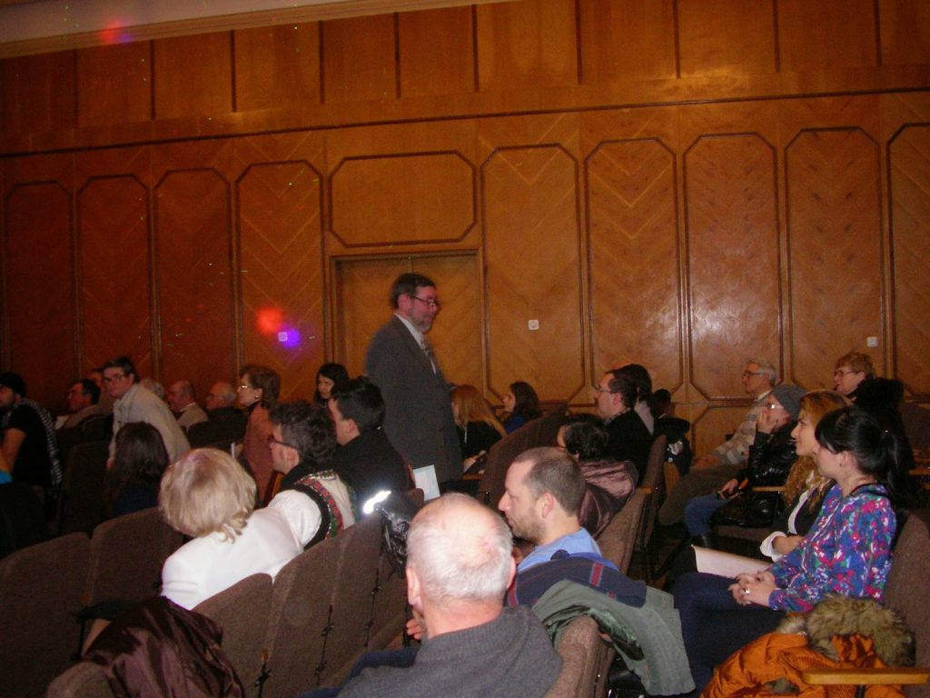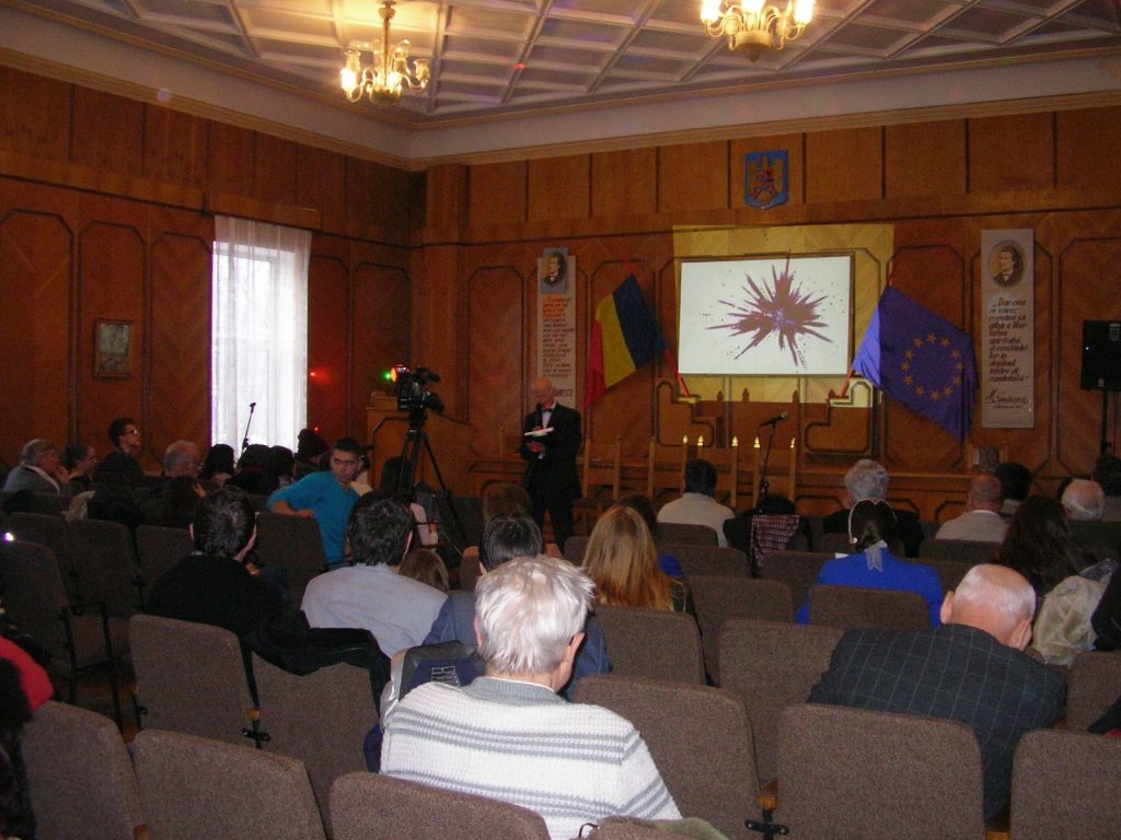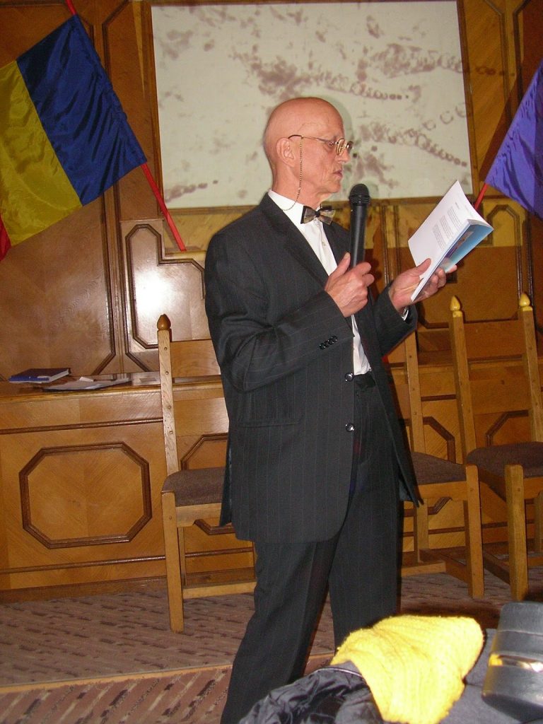 Constantin Georgescu, amfitrionul manifestării, a vorbit despre realizarea acestui volum de versuri. A citit câteva poezii și tot el le-a comentat. Interesant ! A arătat că a ales greu titlul volumului. A avut o listă întreagă, dar s-a oprit la acesta. Consideră că este un titlu esenian. ”Sunt fericit c-a venit public mult, iubitor de poezie. Nimic din ce vedeți nu este regizat. Totul este spontan. E normal să apară și stângăcii. A vorbit despre preocuparea sa de-a realiza un volum de poezii cu titlul „Citadela inocenților„. Toate poeziile vor fi închinate orașului Rădăuți.