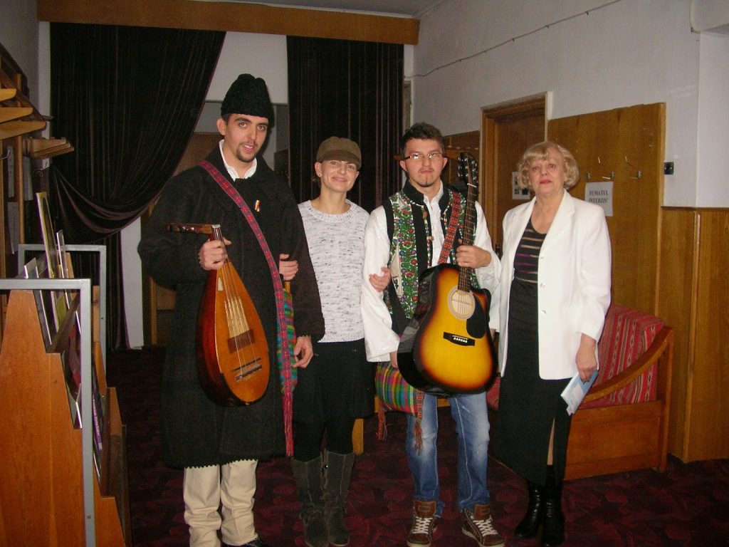 Iar Oana Bejinari, interpretând la vioară Adagio”, a făcut să răsune acorduri dumnezeiești sub tavanul sălii, acorduri care au umplut inimile spectatorilor de bucurie și mulțumire. Sau mai cântat Ana-Maria,Teodora, Magda,Marius, Denisa, Beatrice- Maria, precum și formația ”Folk pedea”, solita acesteia fiind Teodora Simota ( prof. Ciprian Pomohaci). Această muzică tânără, asemenea unui taifun, a năvălit în sală, iar apoi Ionuț Buliga,  acompaniindu-se la chitară, a interpretat tot muzică tânără, dar ceva mai romantică. Iar Mihai Hrincescu, îmbrăcat într-un splendid costum național arborean, acompaniindu-se la cobză, a interpretat melodii vechi de tot, unele de peste 100 de ani. Nici de data aceasta nu i-a lipsit din repertoriu balada, la care ține foarte mult și-o melodie din repertoriul străbunicii sale .