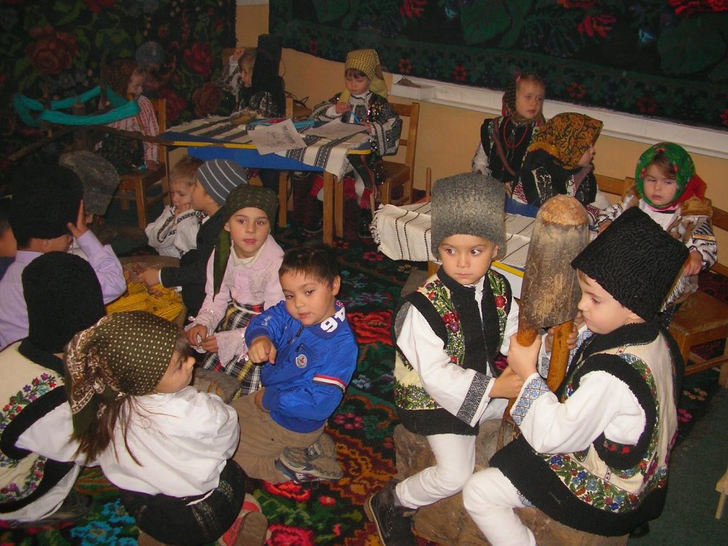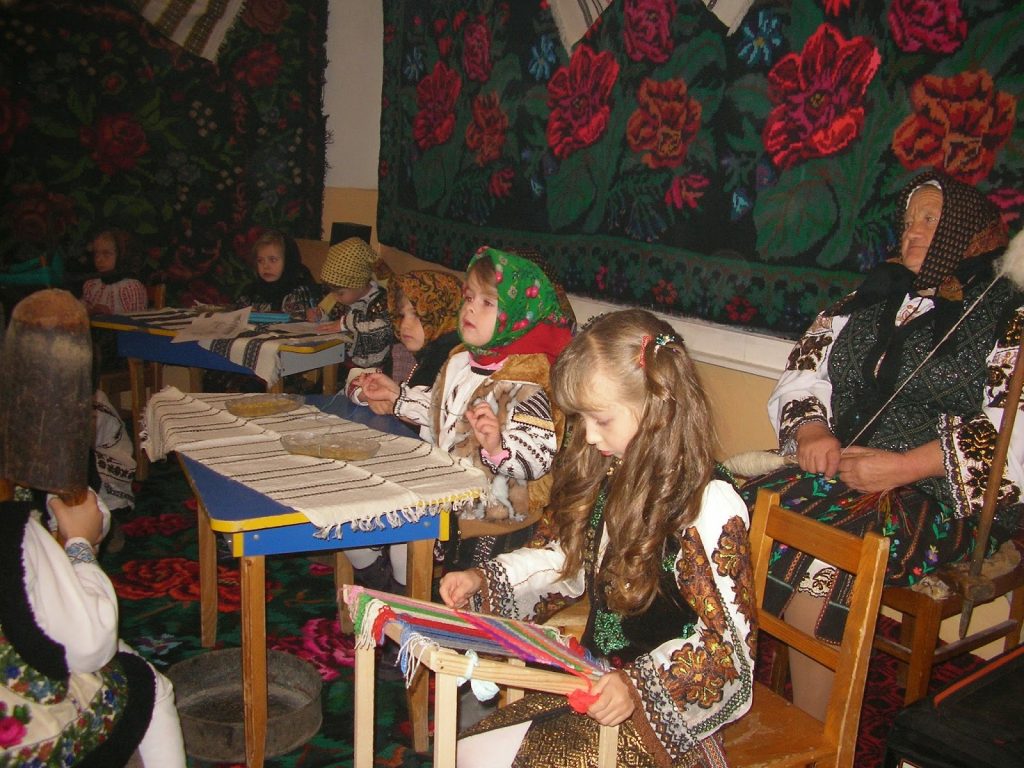 Sala de clasă era ”tapetată” cu covoare cu modele florale și arhiplină de spectatori de diferite vârste, preponderent bunice. Mai era o bunică torcând lână și un bunic împletind o coșarcă din nuiele, copiii având astfel ocazia să vadă cum se practică diferite îndeleniciri milenare ale poporului nostru. În plus, mai erau diferite ustensile pregătite pentru șezătoare: furcă de tors, depănătoare, gherghef, vârtelniță, sucală și altele care sunt strict necesare unei gospodine și la care ea lucrează, de regulă. Toate acestea vor fi folosite de copii în timpul activității.