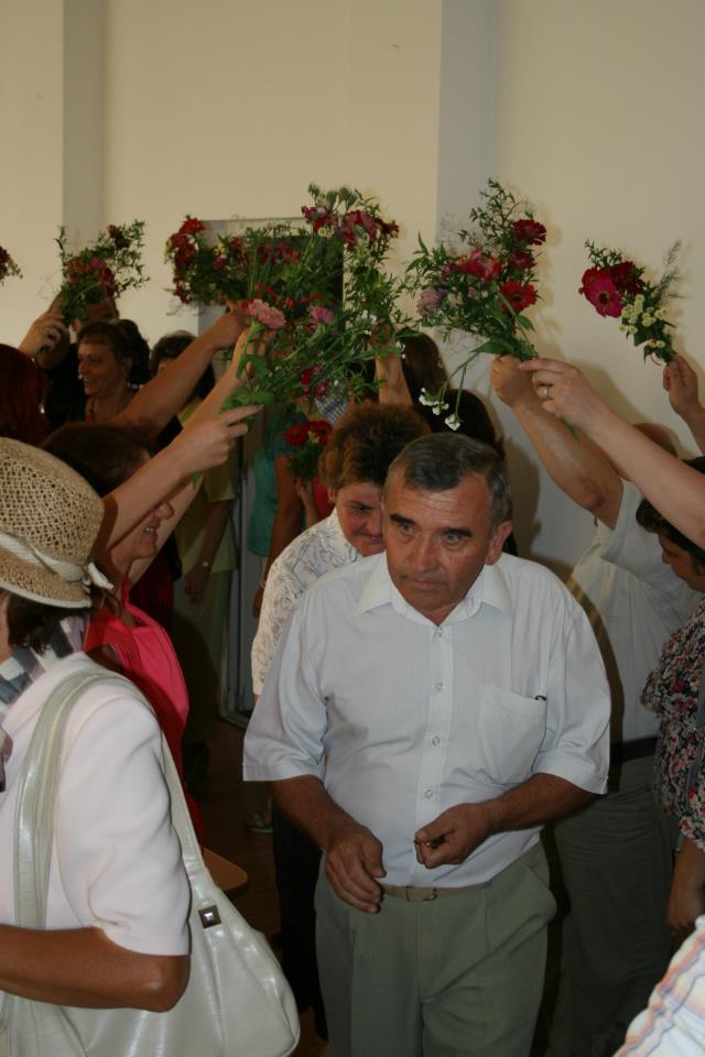 Adunarea actualilor dascăli şi a celor pensionaţi a fost în noua cancelarie a şcolii. Nimeni nu ştia nimic concret, pentru că organizatorii ţinuseră totul într-un secret perfect. Doar ştirea care se difuzase pe canalul local de televiziune anunţase lapidar : „Duminică, 26 august 2012, la şcoala din centrul satului se organizează premierea dascălilor.” Atât. Dar cine o organizează, cum se va desfăşura…nimic. Dar n-am fost ţinuţi mult în tensiune. La orele 17,00 fix am fost invitaţi în sala de festivităţi a şcolii. În acordurile cântecului „Gaudeamus igitur” invitaţii au trecut printre două rânduri de elevi ş, care aveau buchete de flori ridicate deasupra capetelor invitaţilor, formând o cupolă multicoloră. Au fost ca nişte furci caudine foarte plăcute.