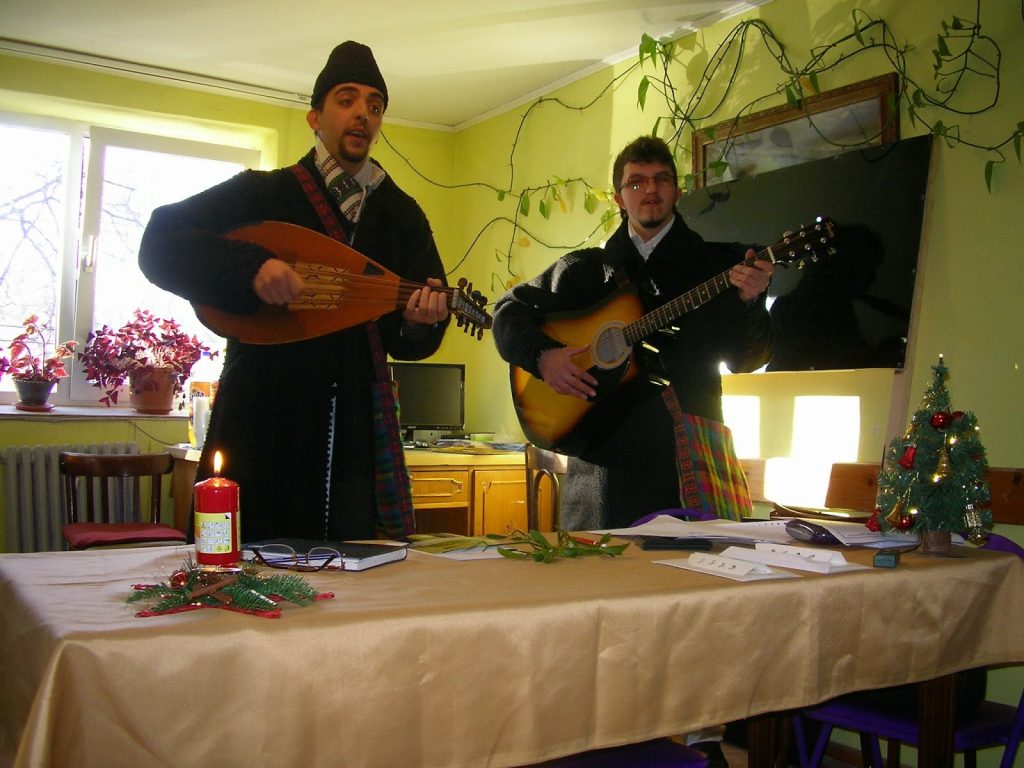 Beneficiind de prezența domnilor Mihai Hrincescu și Ionuț Buliga, participanții au ascultat un mini concert de colinde, de balade și muzică tânără, interpretate de cei doi, vocal și care s-au acompaniat la cobză (Mihai) și chitară ( Ionuț). Excepțională a fost intervenția participanților care, fermecați de colinde, s-au alăturat celor doi interpreți care parcă s-au revigorat de acest gest și-au avut bunăvoința să cânte mai multe piese decât și-au propus inițial. Manifestarea a fost imortalizată de Lucian și Bogdan , cameramani ai Postului de cablu TV ”Cromtel”, care au prezentat apoi documentarul la emisiunea de seară a postului TV respectiv.
