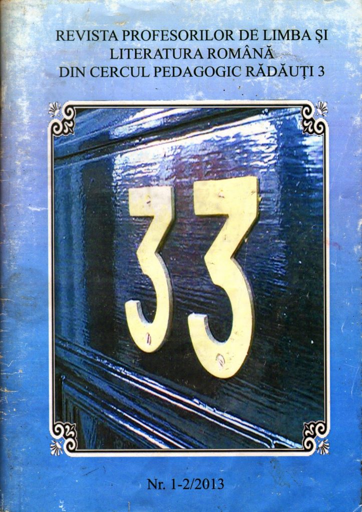 Pe coperta volumului, căci este un adevărat volum de metodică, realizat la cele mai înalte exigențe actuale , tronează mare, scris pe-o tablă școlară, numărul 33. Acesta este și titlul revistei, pentru că ea înmănunchează experiența didactică a unui număr de 33 de profesori din liceele și colegiile naționale din zona Rădăuților. Acești profesori trudesc pe ogorul limbii și al literaturii române de ani de zile, unii chiar apropiindu-se de binemeritata pensie. Aș putea spune, și ce mult îmi place expresia, că ei slujesc pe altarul veșnic al limbii române.Remarc faptul că fiecare professor are o carte de vizită în acest volum, bineînțeles cu fotografia lui și cu un curriculum vitae. S-a lăsat la latitudinea fiecărui cadru didactic să comunice ceea ce consideră că este de folos altora și caracteristic pentru activitatea lui. Pur și simplu rămâi uimit de ceea ce-au putut scrie.Ar dura prea mult să prezint tot ce este scris, de aceea mă voi limita doar la a menționa unele dintre acestea, mai ales pe cele pe care le-am considerat că trebuie să le menționez. Am fost în mare încurcătură când am fost pus să aleg. Și am avut de unde alege !Am remarcat câteva proiecte pluridisciplinare realizate pentru limbă și literatură română și geografie, istorie, educație plastică și educație muzicală. Autorii au prezentat în amănunt, la fel și cei care vor urma, cum au realizat aceste activități. Urmează proiecte didactice : ”Personajul feminin în literatura română ”(Ionela-Mihaela Bîndiul); Utilizarea criticii esoterice de către Vasile Lovinescu”( Iulina Halip); ”Teoria inteligențelor multiple”(Adia Laurus); ”Comunicarea nonverbală solemnă”(Daniela Andriiciuc); ”Trăsături ale postmodernismului”(Adriana-LenuțaHusdup); ”Metoda pălăriilor gânditoare”(Robert Hofman); ”Simbolismul-lucrul pe grupe”(Emilia Adriana Popescu). Foarte interesantă mi s-a părut tema ”Prelegerea- dezbatere” (Vio Coroamă), precum și temele de folclor: ”Riturile de trecere în Bucovina” (Anca Tofan); ”Folclorul între mit și realitatea elevilor de liceu”(Cristina Vițega) și ”Folclorul obiceiurilor”( Mirela Haureș) .Un loc deosebit îl ocupă propunerile de fișe de lucru ,de teste de evaluare inițială și lecțiile de sistematizare și de recapitulare, propunătorii venind cu foarte multe aplicații. Problema arhaismelor și a neologismelor a fost prezentată deosebit de către prof. Andreea Duduman. Două tipuri de activitatea m-au interesat foarte mult, mai ales pentru ineditul lor: ”Atelierul de jurnalism” (Narcisa Rei) și ”Atelierul de jurnalism” (Angela Sehlanec) ,ultima propunând și proiectul ”De la Haiku la poezia postmodernă”, tot un atelier de creație.Demn de apreciat este modul foarte serios și temeinic în care au fost elaborate aceste proiecte și, mai ales, cum au fost prezentate cititorului interesat, care are foarte mult de învțățat dacă le studiază din interes, fiind preocupat de perfecționarea sa.