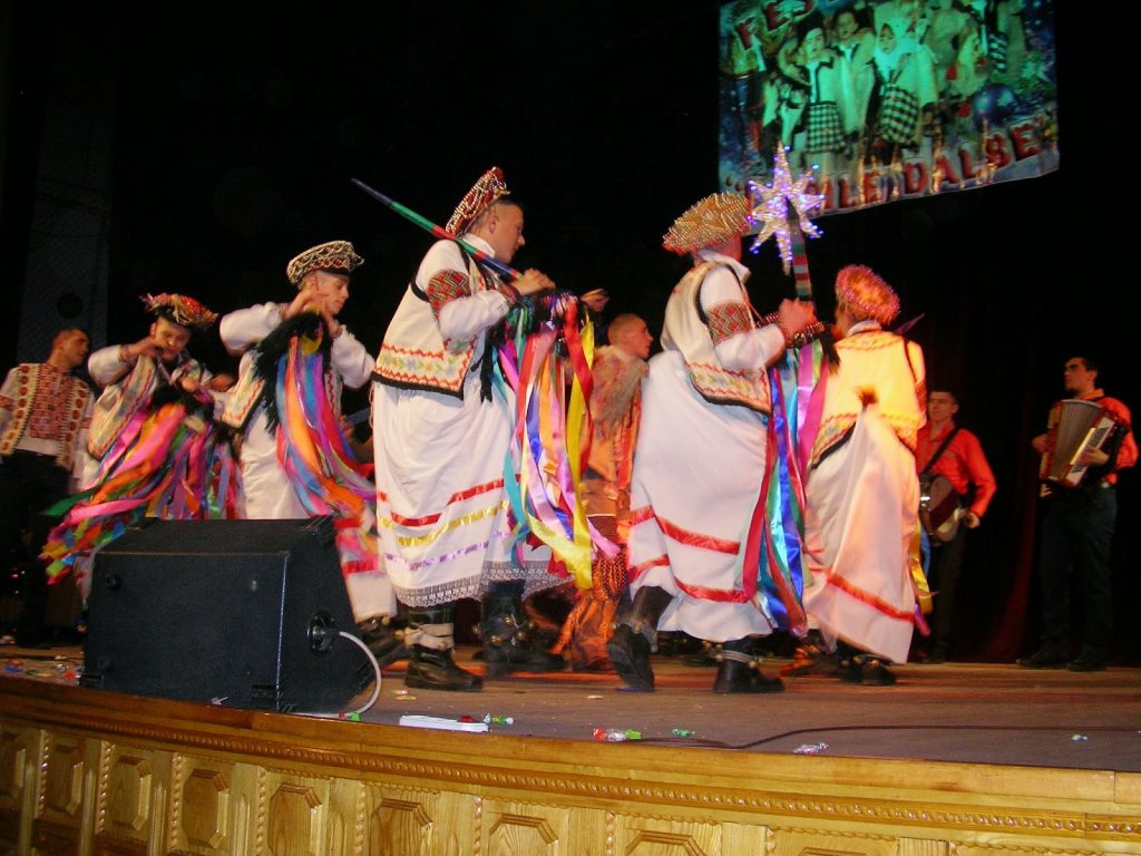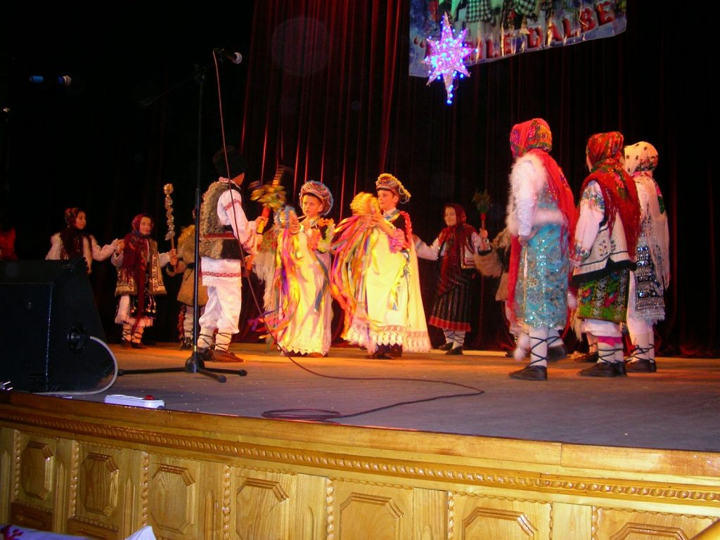 Nu mai puțin de 8 ansambluri folclorice , unele combinate și cu formații tradiționale de Anul Nou, au prezentat, pre întrecute, numerele lor. ”Urătorii” din Voloca au prezemn6tat scena nașterii Domnului, ”Mugurii” din Pătrăuții de Jos cuplaj de obiceiuri și jocuri populare, iar prin  Aurica Bojescu, solistă, a urat spectatorilor : ” Să ne-aducă har, lumină/ Peste mândra Bucovină.; Gimnaziul nr. l din Herța, alături de ”Spicușor” al casei de cultură din același oraș, au prezentat ”Ursul” și ”Capra”; cele 8 fetițe ale Școlii medii din Rusa au ridicat publicul în picioare cu evoluția lor;  ”Căiuții” din Mogoșești ne-au uimit cu costumația și interpretarea lor; ”Tălăncuța” din Oprișeni, c-o solistă îmbrăcată în alb, exact ca Zâna iernii, a închinat un cântec din care-am reținut: ”E-o iarnă atât de frumoasă/ Cu îngeri mulți în casă”.